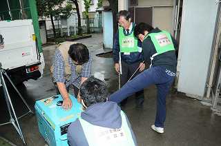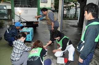 施設グループが安全の点検の方法や、電気を起こすためのモーターの回し方を確認しています。