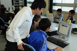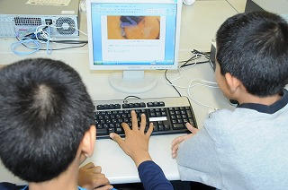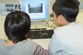 コンピュータを使って興津自然宿泊体験教室のまとめを作っています。