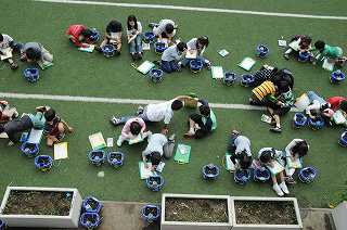 先日種まきをした二十日大根の観察をしています。