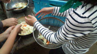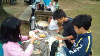 内浦山県民の森にいます。カレー作りが始まりました。作業分担をして進めています。10:30