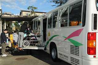 子どもたちがバスで登校してきました。