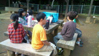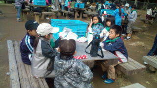 内浦山県民の森にいます。カレー作りの進め方を班ごとに確認しています。9:55