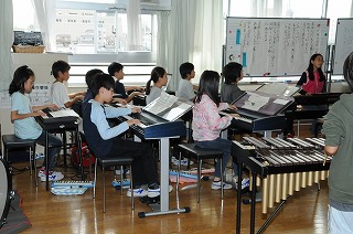 1組、2組合同で合奏の練習をしています。