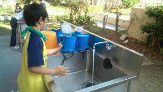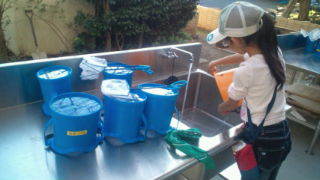 宿舎にいます。観察用具を洗って返しています。15:15