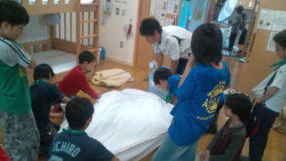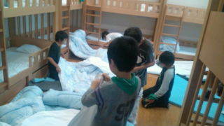 10/24・4年興津自然宿泊1日目 シーツの準備