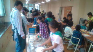 宿舎にいます。ごちそうさまをしたあとに、食器を片付けてています。7:40