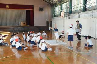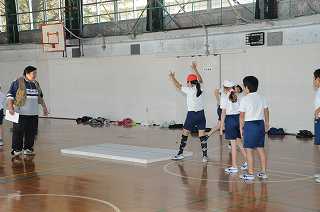 上手な人の側転を見て気を付けるところを確認した後で、グループごとの練習です。