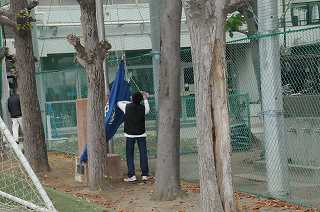 当番が校旗を揚げています。
