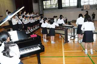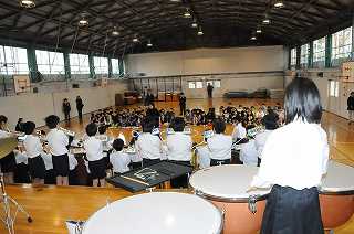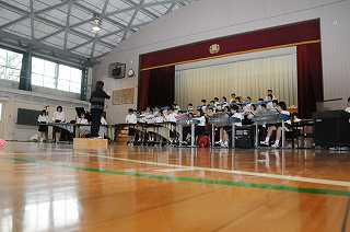 6年生が5年生の合奏を聴いています。曲目は「君をのせて」です。