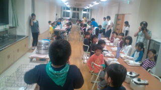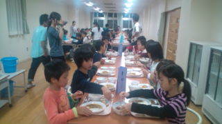 興津の宿舎にいます。原町小の4年生との交流が終わりました。夕食をいただきます。18:20