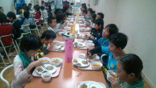 宿舎にいます。定刻に夕食を食べ始めることができました。みんな元気です。18:00
