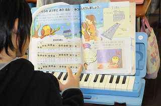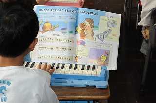 鍵盤ハーモニカで「きらきらぼし」の練習をしています。