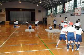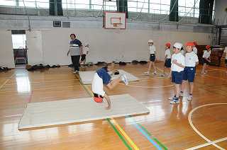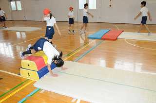 前転ととび前転の練習をしています。