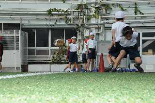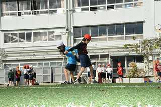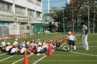 多様な動きをつくる運動遊びとして、ボールを使っています。