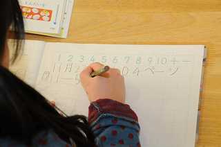 ひき算の練習問題に取り組んでいます。