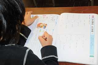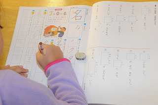 漢字の「名」の練習をしています。