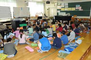 日本の童謡の歌詞を確かめたり、これまで練習してきた曲を鍵盤ハーモニカで演奏したり、小ぎつねを演奏したりしています。