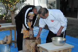 いよいよ子どもたちによる餅つきの始まりです。
