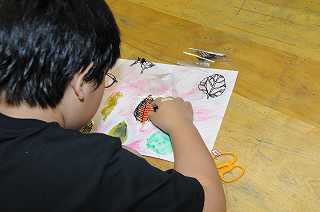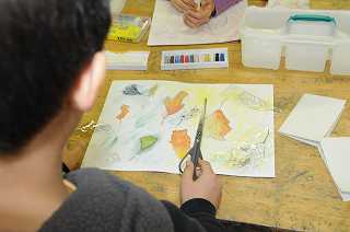 校庭の木の葉を使い、その美しさを表現する作品を作っています。