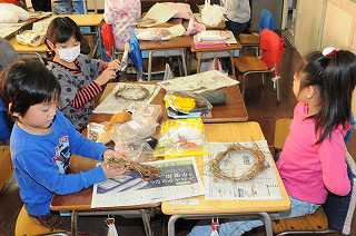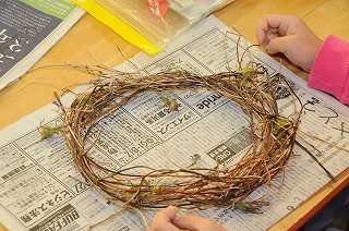 朝顔のツルを使ってのリース作りをします。