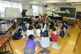 「陽気な船長」の曲を演奏するために、楽器の担当を決めています。