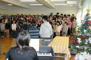 今日は合唱団のお楽しみ会です。一人一人がみんなの前で特技を披露しています。