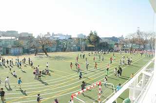 子どもたちが校庭でなわとびの練習をしています。