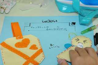小物入れが仕上がり、台紙に貼っています。