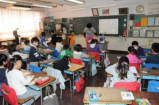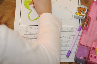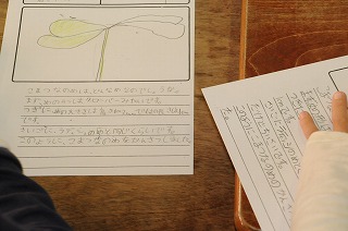 小松菜を観察したことをカードにまとめています。