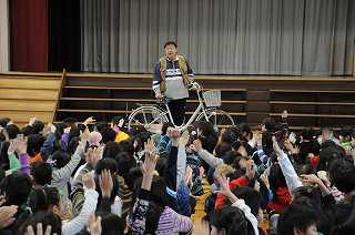 生活指導主任から冬休みの生活について気を付けることを指導しました。特に、自転車の点検と、乗り方について詳しく話をしました。