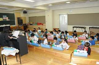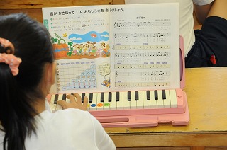 「かぼちゃ」を鍵盤ハーモニカで演奏した後で、歌っています。