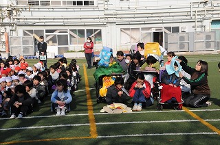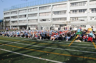 校庭への避難が完了し、反省をしています。