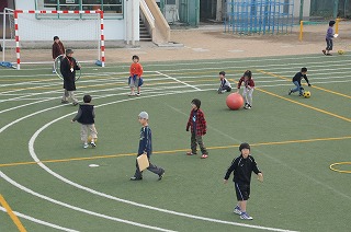 寒い日ですが、ランドセル広場が始まり、子どもたちが元気に遊んでいます。