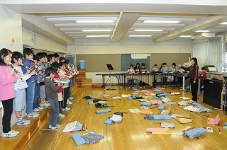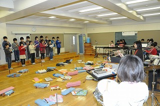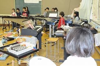 指揮を見て合奏することをめあてに練習しています。