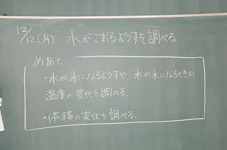 水が凍る様子を観察しています。