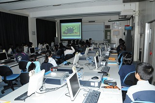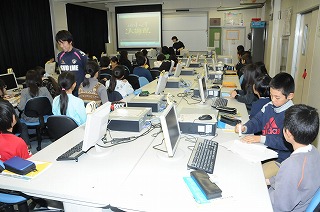 水が凍る様子を、デジタル教材を見て確認しています。
