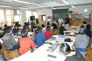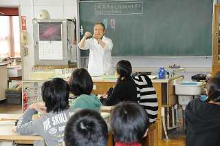 リトマス紙を使って、水溶液の仲間分けをしています。