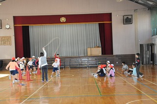 大なわの練習をしています。