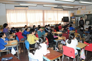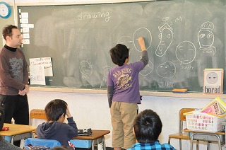 「ごきげんいかが?」の問いに対して英語で答え、その意味を絵に表しています。