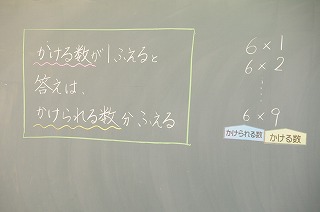 かけられる数とかける数の関係を考えながら九九の練習をしています。