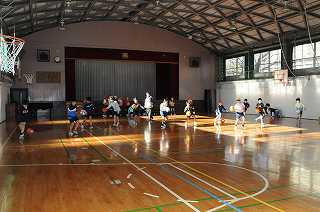 バスケットボールのドリブルの練習をしています。