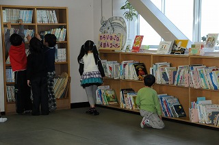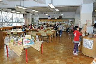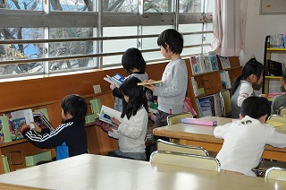 図書室で本を選んでいます。
