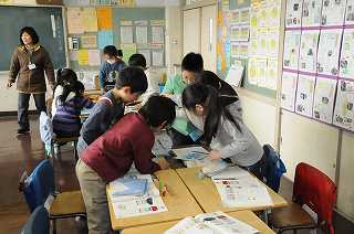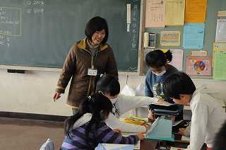 3年2組は学級閉鎖の間の分を取り戻すために、今日だけ単独で授業をします。はかりを使って「重さ」を確かめています。