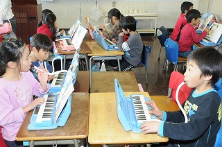 きらきらぼしを歌った後、鍵盤ハーモニカで演奏しています。