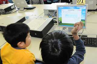 コンピュータで、自分が頑張ったことに対する賞状を作っています。
