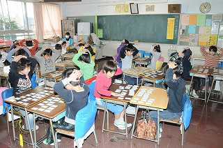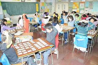 ルールを守って百人一首のゲームをしています。
