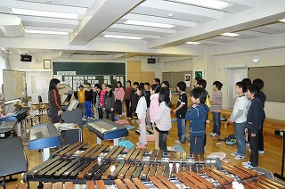 合唱と合奏の練習をしています。合唱の声も、合奏の音もとてもキレイです。