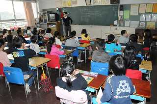 なの花まつりで、心に残ったお店にメッセージを書いています。書いたメッセージは各学級に届けられます。