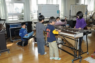 グループに分かれて合奏の練習をしています。