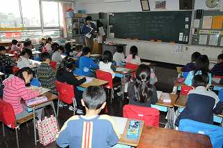 なの花まつりで、心に残ったお店にメッセージを書いています。書いたメッセージは各学級に届けられます。